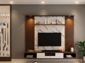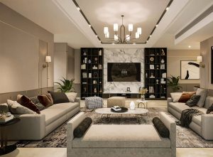Royal Interiors designs decorative false ceilings that enhance the beauty and lighting of your interiors. Our ceilings improve the overall ambiance by providing proper light distribution and a clean, modern finish.